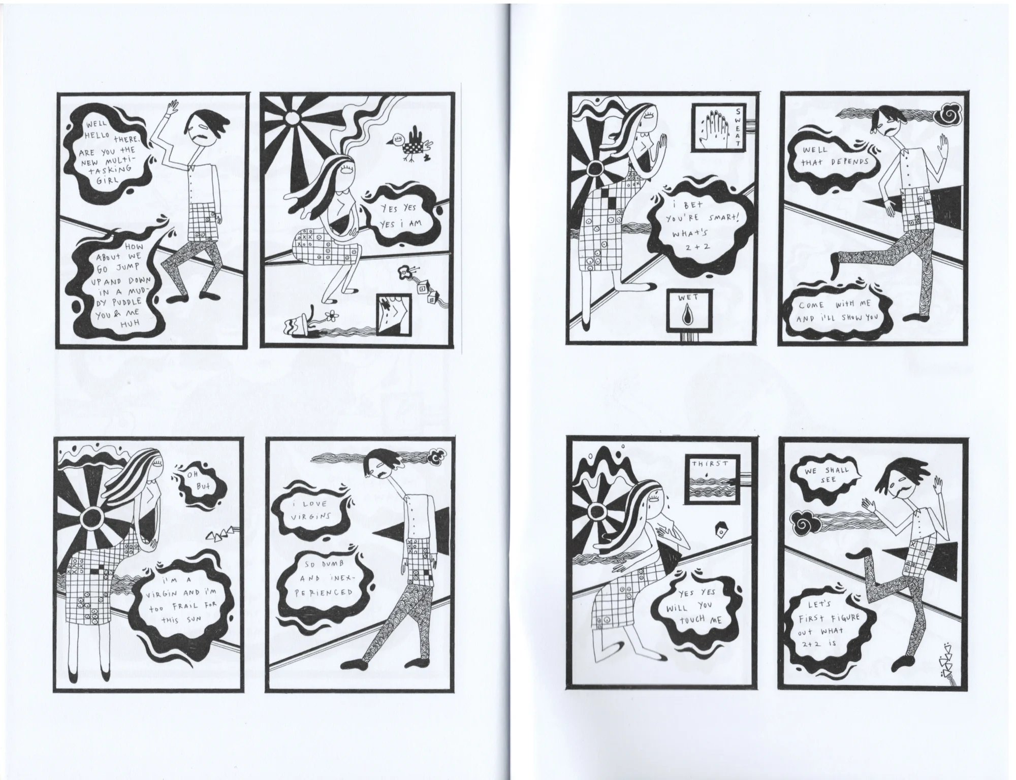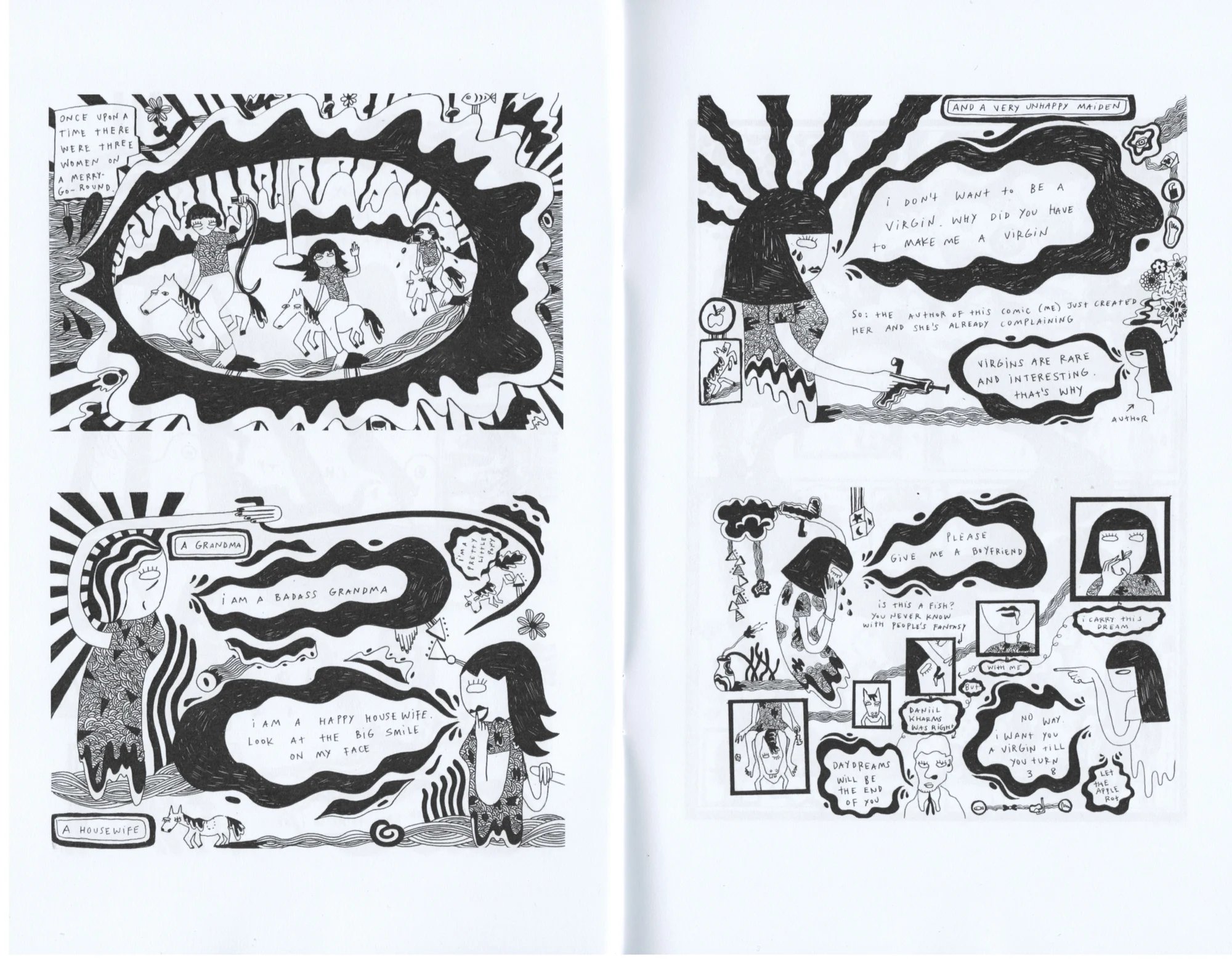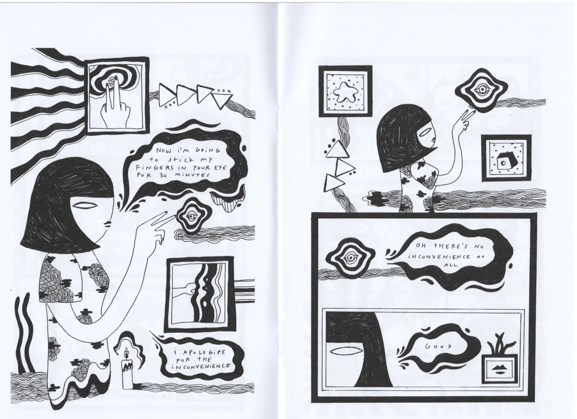 Tana Oshima is one of the strongest new voices in self published comics today. The latest release from the prolific New York artist, 16 RUBBER DUCKS is a testament to her ambition and skill as a cartoonist. These comics are poetic yet concrete. Intimate yet distant. There’s a strength in vulnerability. And it’s all communicated via Oshima’s idiosyncratic comics language of blank eyes, flat spaces, patterns and decorative elements imbued with meaning. Each piece in this brief collection gives the reader a kernel. A feeling. Never overstaying it’s welcome. The buoyant title and cover are the surface cover for the depth held inside.