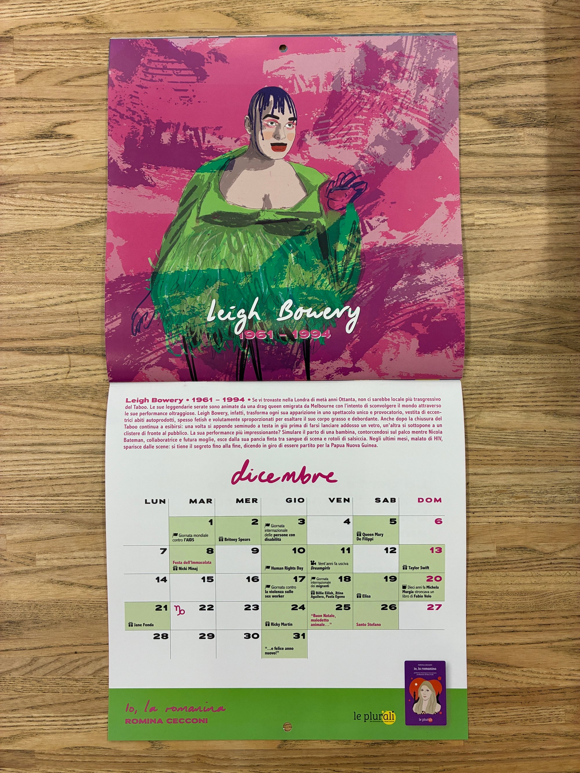 Il Checcalendario è il racconto delle icone che hanno scritto le pagine più importanti del movimento LGBTQ+, grazie anche a un’illustrazione originale creata appositamente per il progetto da Martina Regis. Dodici personaggi che con la loro queerness si sono distint* e hanno fatto in modo di essere ricordati in tutto il mondo. Amanda Lepore, Pedro Lemebel, Leigh Bowery, Sylvester, Claude Cahun, Colette, e tante altre figure eccentriche, provocatorie, spesso contraddittorie, capaci di scardinare le regole e, a volte senza nemmeno volerlo, portare con sé un messaggio di inclusività e totale libertà.