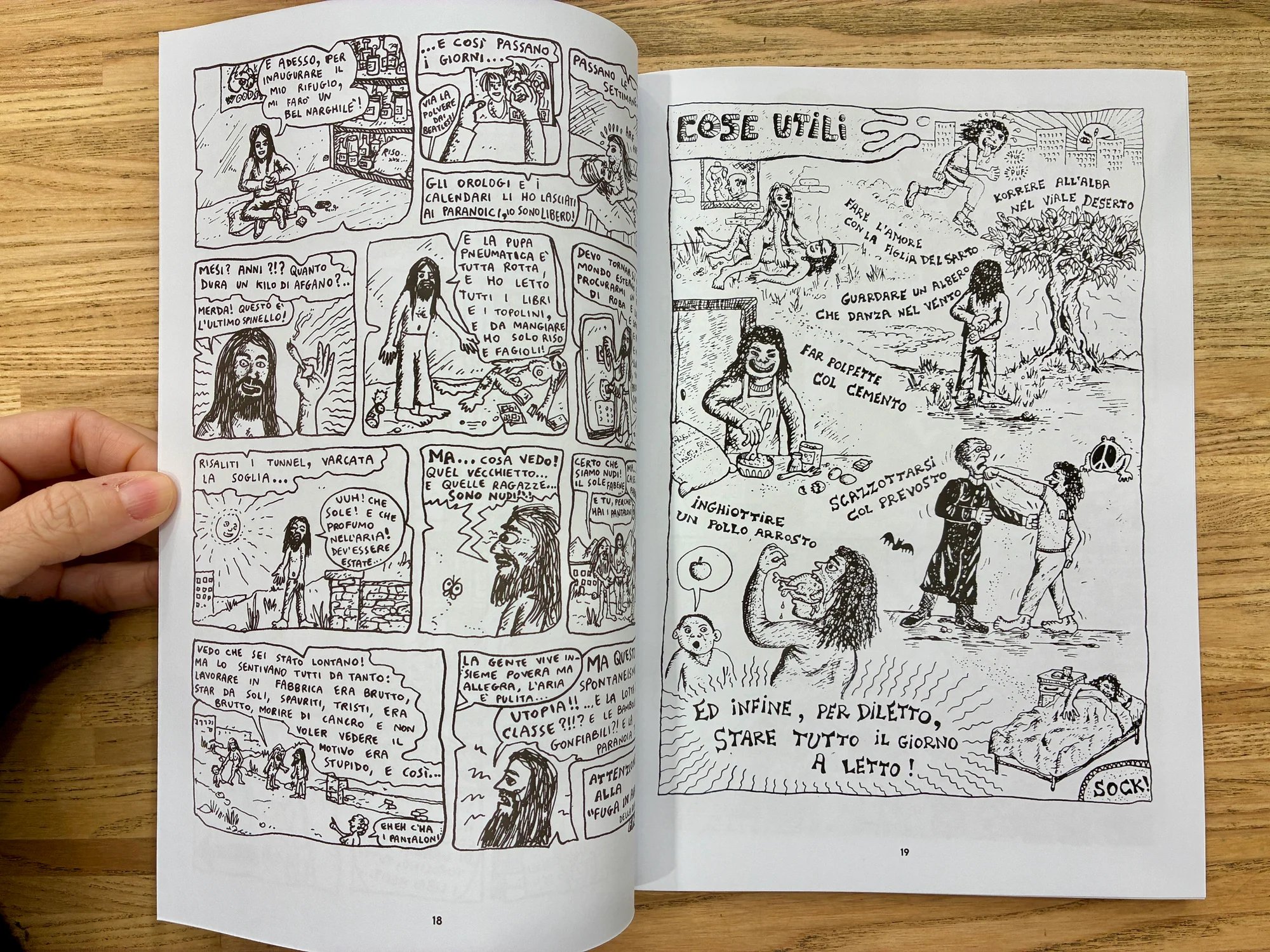 Attraverso l’analisi e la citazione di autori come Matteo Guarnaccia, Max Capa, Mizio Turchet, Stefano Tamburini, Filippo Scozzari e molti altri, il libro ripercorre la nascita di un linguaggio visivo alternativo, sviluppatosi tra riviste, collettivi e autoproduzioni, in un clima di forte sperimentazione che ha gettato le basi del moderno graphic novel.