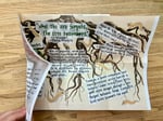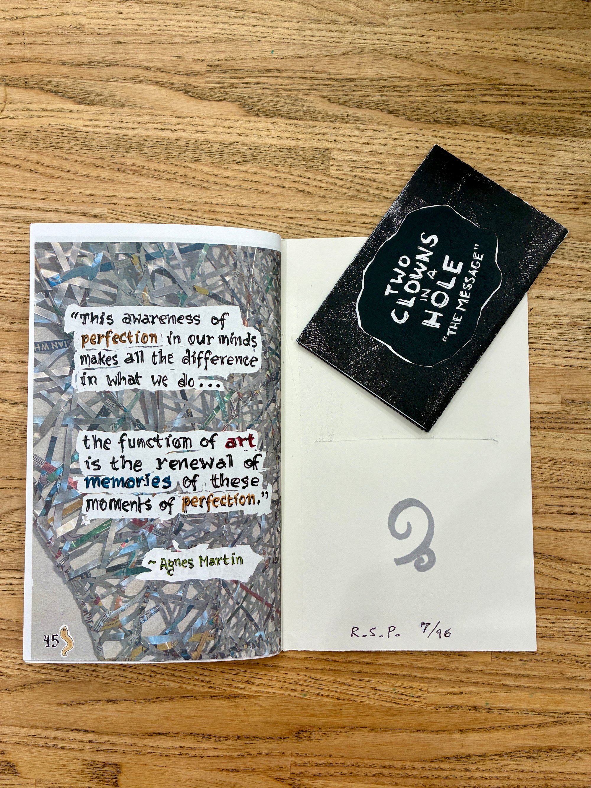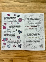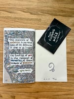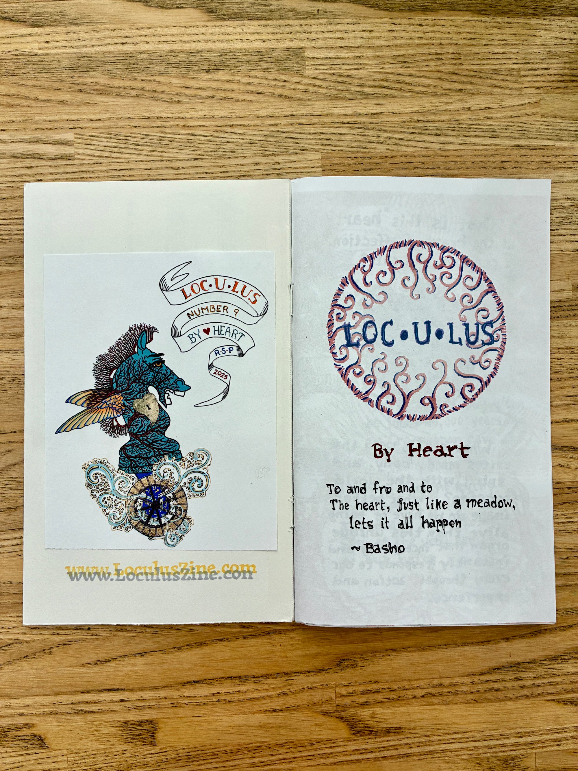 Loculus is a hand-made Art Zine that features a visual essay on a theme. The ideas inside are wide-ranging, provocative, and intended to inspire thought and action. Each copy is collaged with a unique art paper, hand printed from a linoleum block, and folded with an inside pocket that contains a mini-comic.