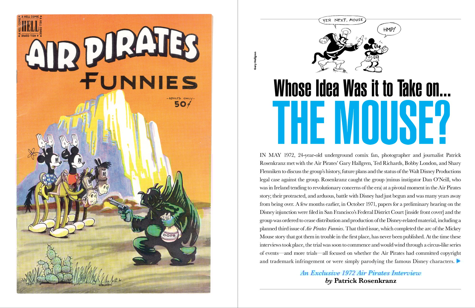 The second issue of dummy looks at several notable examples of unauthorized (and inspired by) Mickey Mouse comics. It includes a deep dive into the notorious Air Pirates, with commentary by Dan O'Neil, Bobby London, Gary Hallgren, Ted Richards, Shary Flenniken and others, as well as rarely seen Air Pirates art and memorabilia. It also has an interviews with Robert Armstrong and his beloved Mickey Rat and Kaz about Creep Rat, and a look at the Mickey Tijuana Bible dirty comics, Wally Wood's X-Rated Disneyland Memorial Orgy poster and even an interview with the legendary artist Stanley Mouse by the great Edwin "Savage Pencil" Pouncey!.