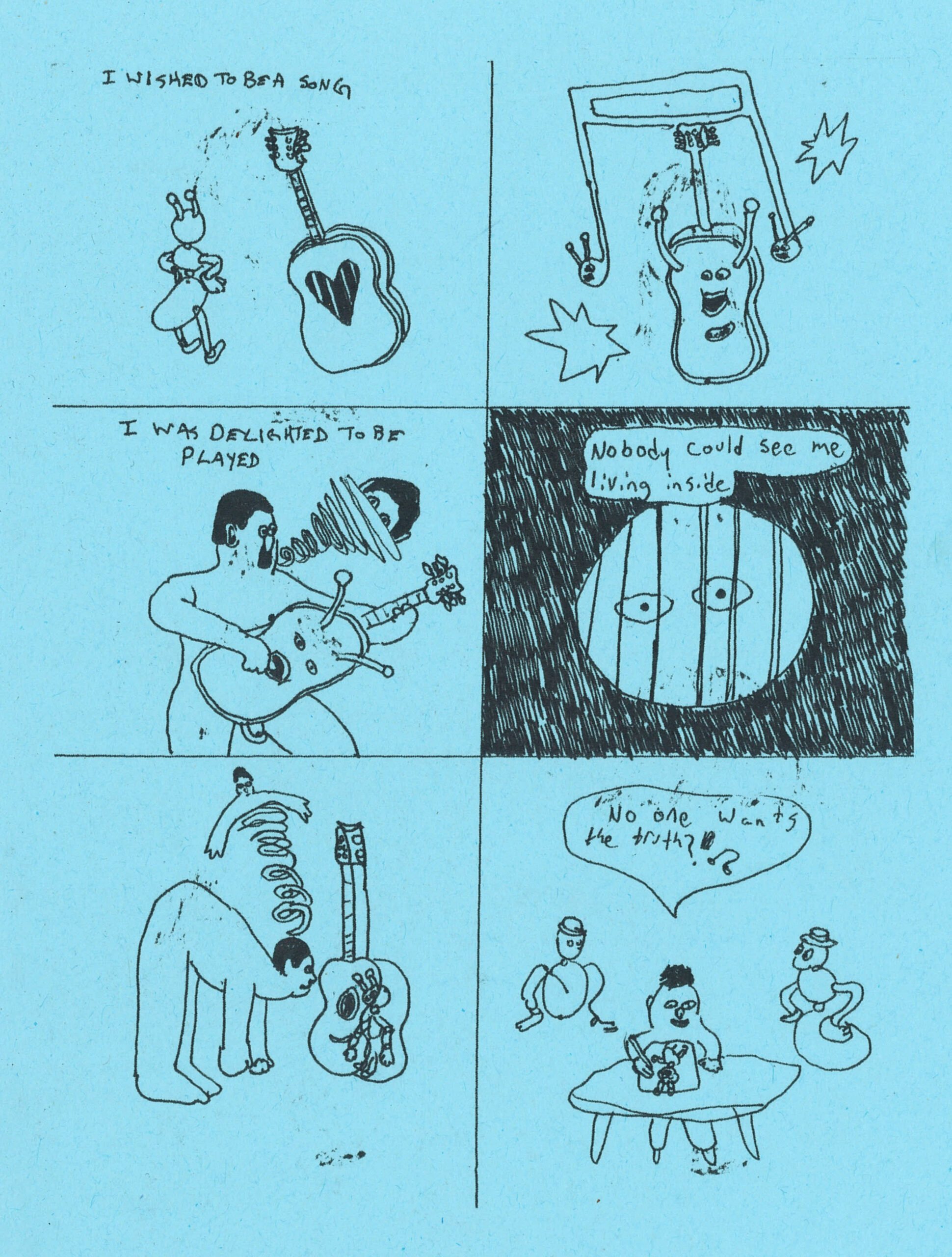 An ant opens a door and is reborn as a song. A regrettable name is given to a boy child. What is a wish? Rare comics made by Dylan Jones in January 2025.