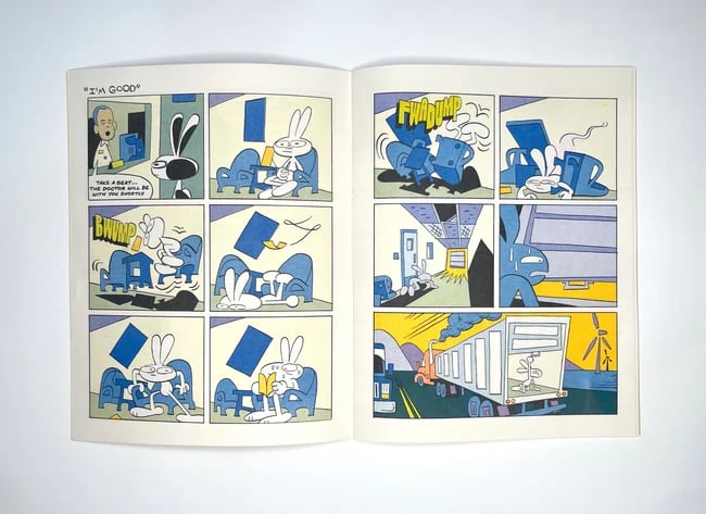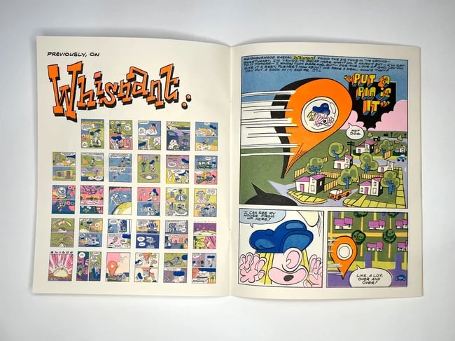 Cram Books presents a new collection of comic shorts by Max Huffman in peeper-popping 4-color risograph. Featuring the return of neighborhood ne'er-do-much Whisnant, "hit" comic strip "I'm Good", [BELOVED CARTOON ICON REDACTED]'s dealer and more.